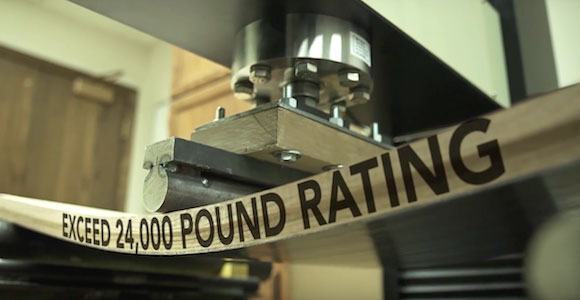 Pound Saver™ consists of an FRP layer bonded to the bottom of a Rockland laminated oak floor.